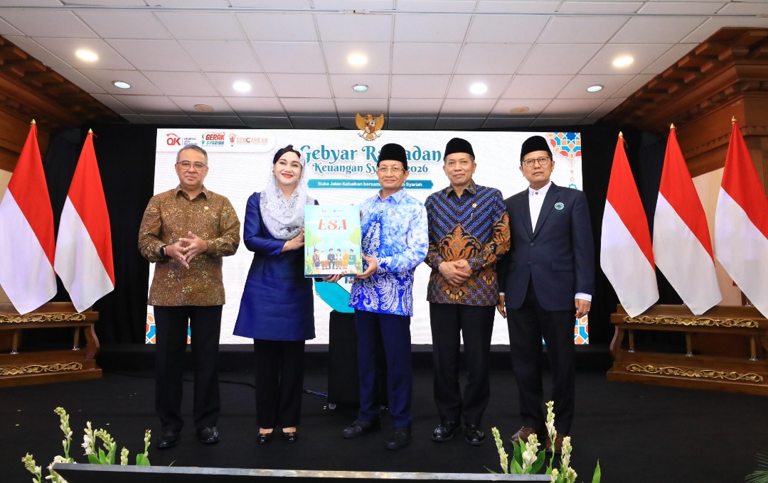 Pimpinan Otoritas Jasa Keuangan bersama perwakilan pemerintah dan pemangku kepentingan menunjukkan Buku Edukasi Keuangan Berbasis Agama (ESA) dalam penutupan Gebyar Ramadan Keuangan Syariah 2026 di Jakarta, Kamis (2/4/2026).