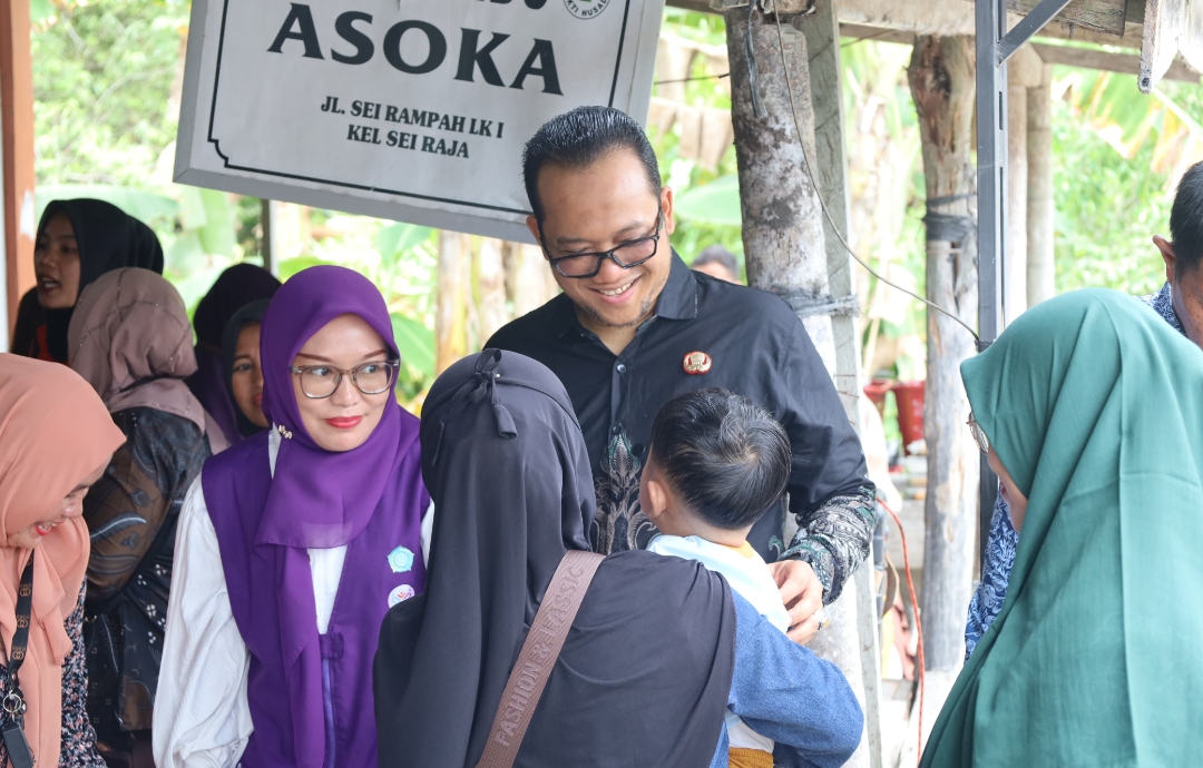 Wakil Wali Kota Tanjungbalai, Muhammad Fadly Abdina, berinteraksi dengan warga saat meninjau pelaksanaan Program Makanan Bergizi Gratis (MBG) di Posyandu Asoka, Kelurahan Sei Raja, Kecamatan Sei Tualang Raso, Kamis (2/4/2026).