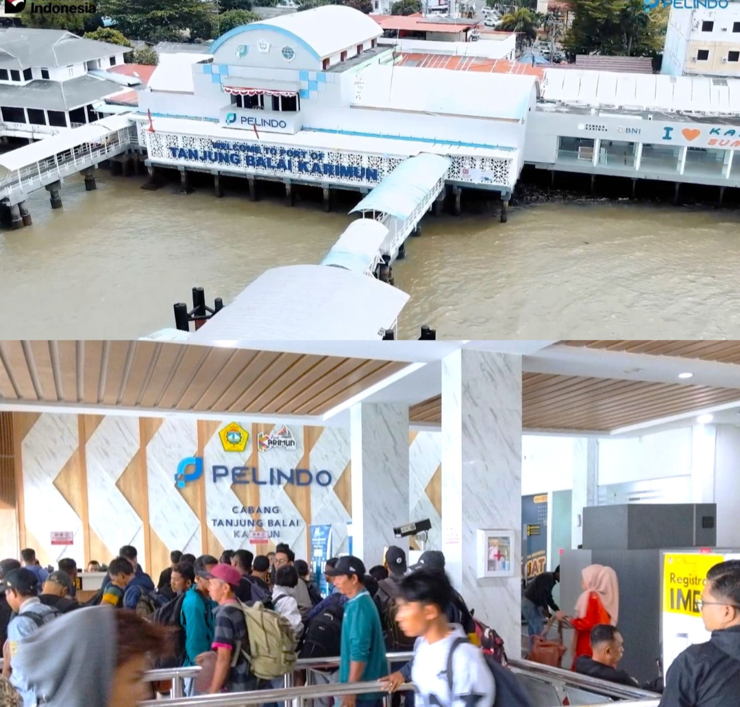 Suasana aktivitas penumpang di Pelabuhan Tanjung Balai Karimun saat periode angkutan Lebaran 2026 yang mengalami peningkatan signifikan, seiring tingginya mobilitas masyarakat pengguna jasa transportasi laut.