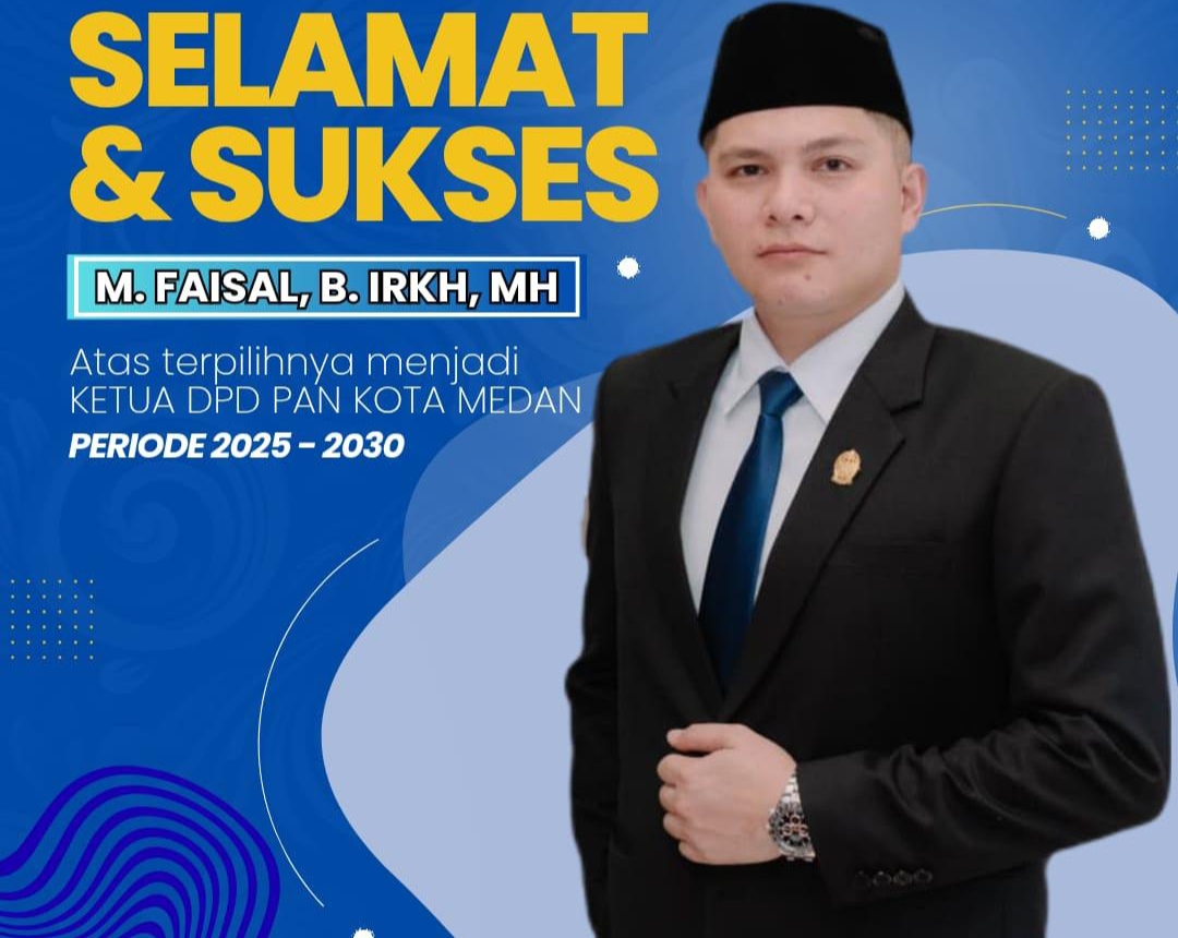 GIMIC.ID, MEDAN – M. Faisal B IRKH resmi terpilih sebagai Ketua Dewan Pimpinan Daerah (DPD) Partai Amanat Nasional (PAN) Kota Medan untuk periode 2025–2030.