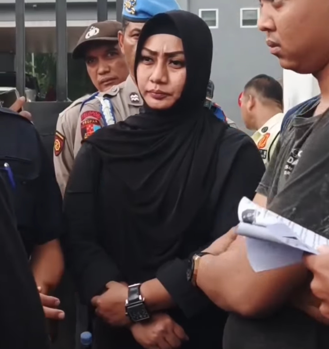 Anggota Komisi IV DPRD Medan, Lailatul Badri, saat menemui massa aksi di halaman gedung DPRD Medan, Senin (20/4). Ia turun langsung menerima aspirasi terkait dugaan pencemaran lingkungan oleh pabrik kecap di Medan Timur, sebelum akhirnya pertemuan dilanjutkan di ruang komisi akibat hujan deras.